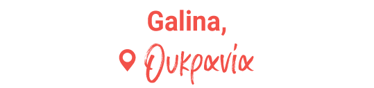 Η Galina Kotsiur είναι 53 ετών και είναι από την Ουκρανία. Ήρθε στην Αθήνα μαζί με τον σύζυγό της και το παιδί της. Η Γαλήνη, είναι μαθηματικός και στην Ουκρανία εργαζόταν ως καθηγήτρια σε σχολείο. Τότε, υπήρχαν φορές που δεν πληρώνονταν με χρήματα, αλλά με προϊόντα: Ζάχαρη, αλεύρι, βότκα.