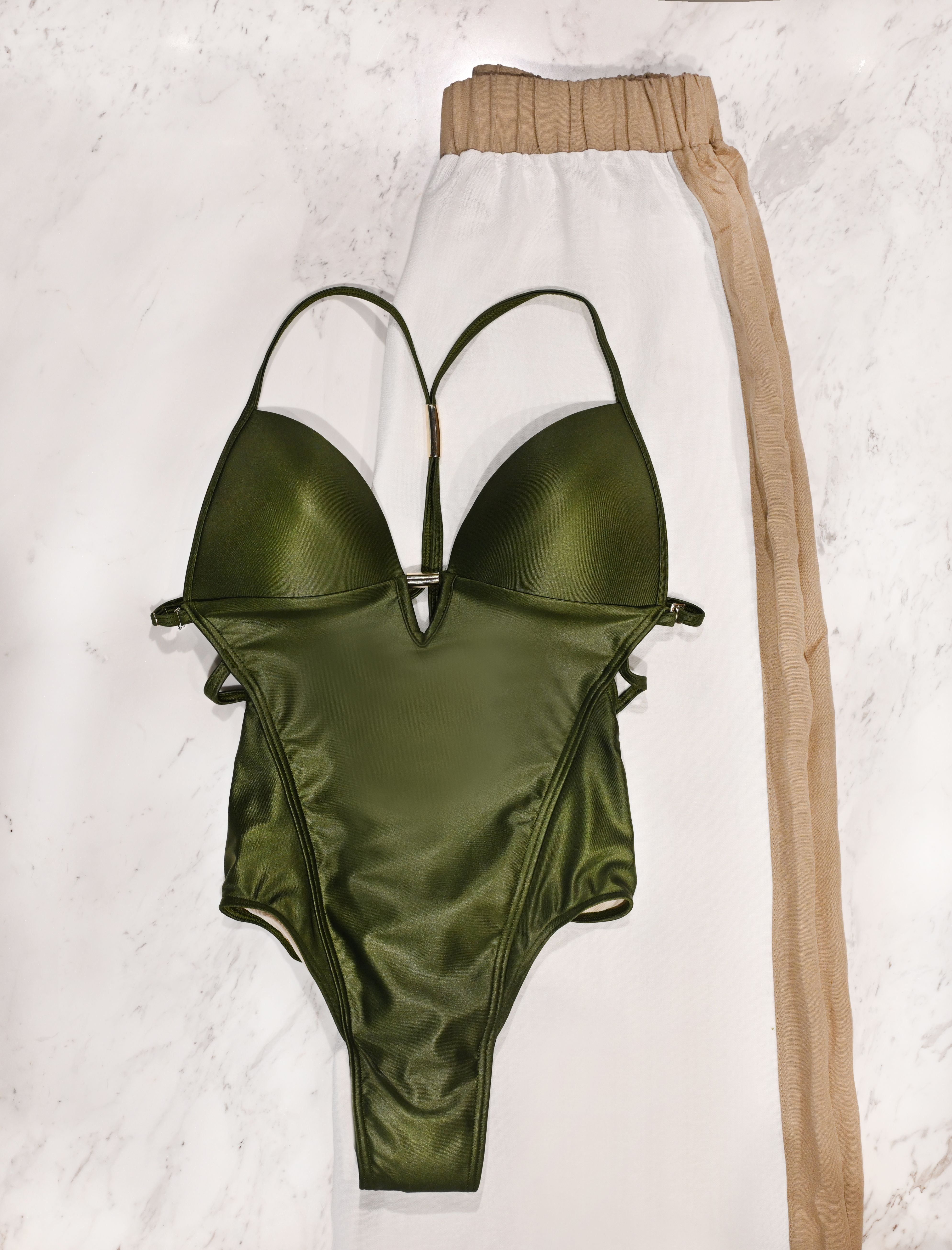 Ένα ολόσωμο μαγιό αποτελεί item – κλειδί της καλοκαιρινής γκαρνταρόμπας, όχι μονάχα για τα looks παραλίας αλλά και για τα πιο elegant βραδινά outfits. Στα καταστήματα MED ανακαλύψαμε ένα ολόσωμο μαγιό σε υπέροχη χακί απόχρωση, με εντυπωσιακή πλάτη και μεταλλικά στοιχεία, με το οποίο θα απογειώσεις το beachwear σου αυτό το καλοκαίρι.
