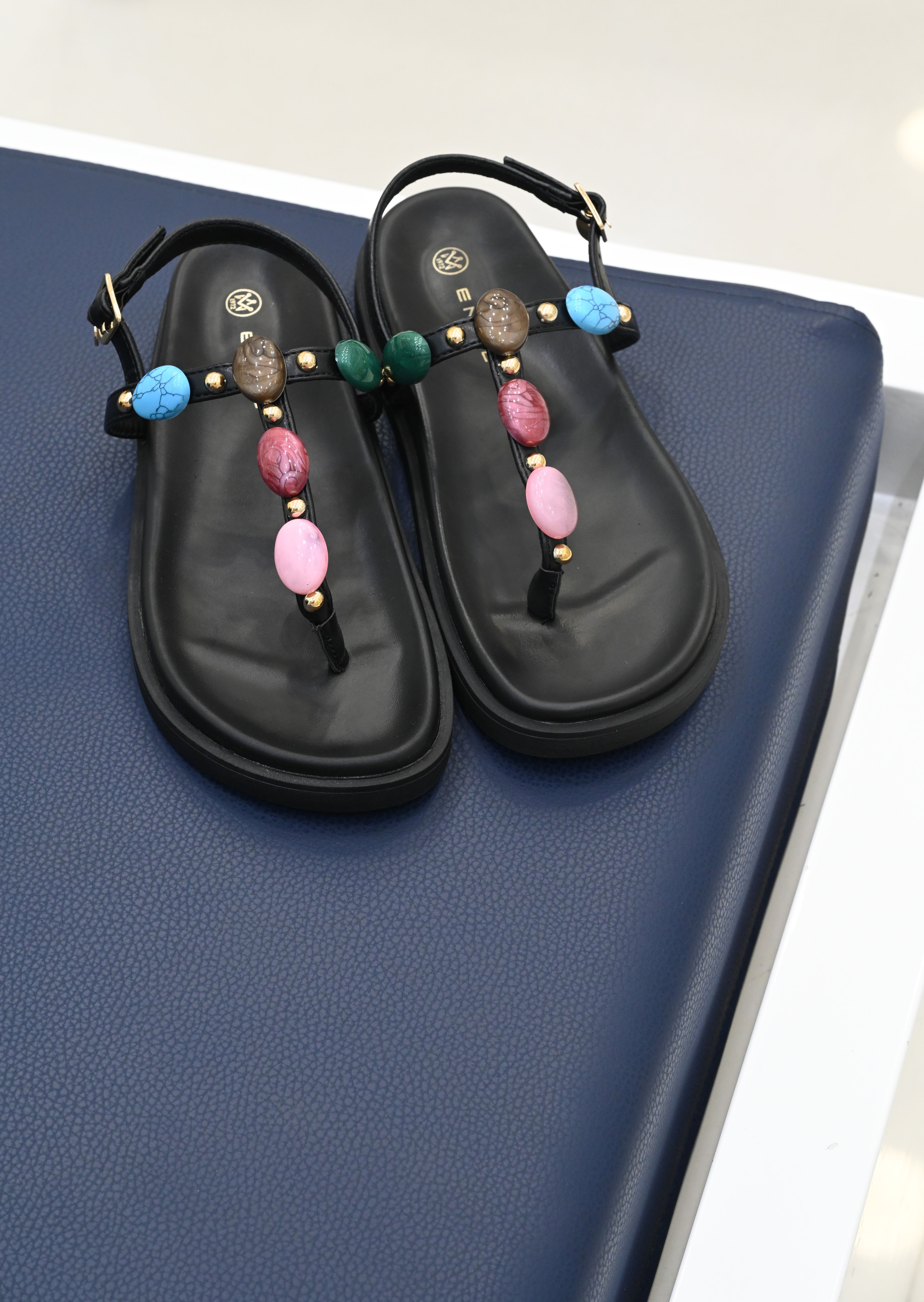 Τα fltaform σε μαύρη απόχρωση αποτελούν πάντα την ιδανική επιλογή για τις βόλτες στο νησί και την πόλη. Εκείνα που ανακαλύψαμε πάντως είναι τόσο άνετα και κομψά που θα τα ταιριάξεις, τόσο με τα αέρινα φορέματά σου, όσο και με τα pull on παντελόνια σου ενώ οι χρωματιστές πέτρες θα δώσουν την απαραίτητη νότα ρομαντισμού σε κάθε εμφάνισή σου.