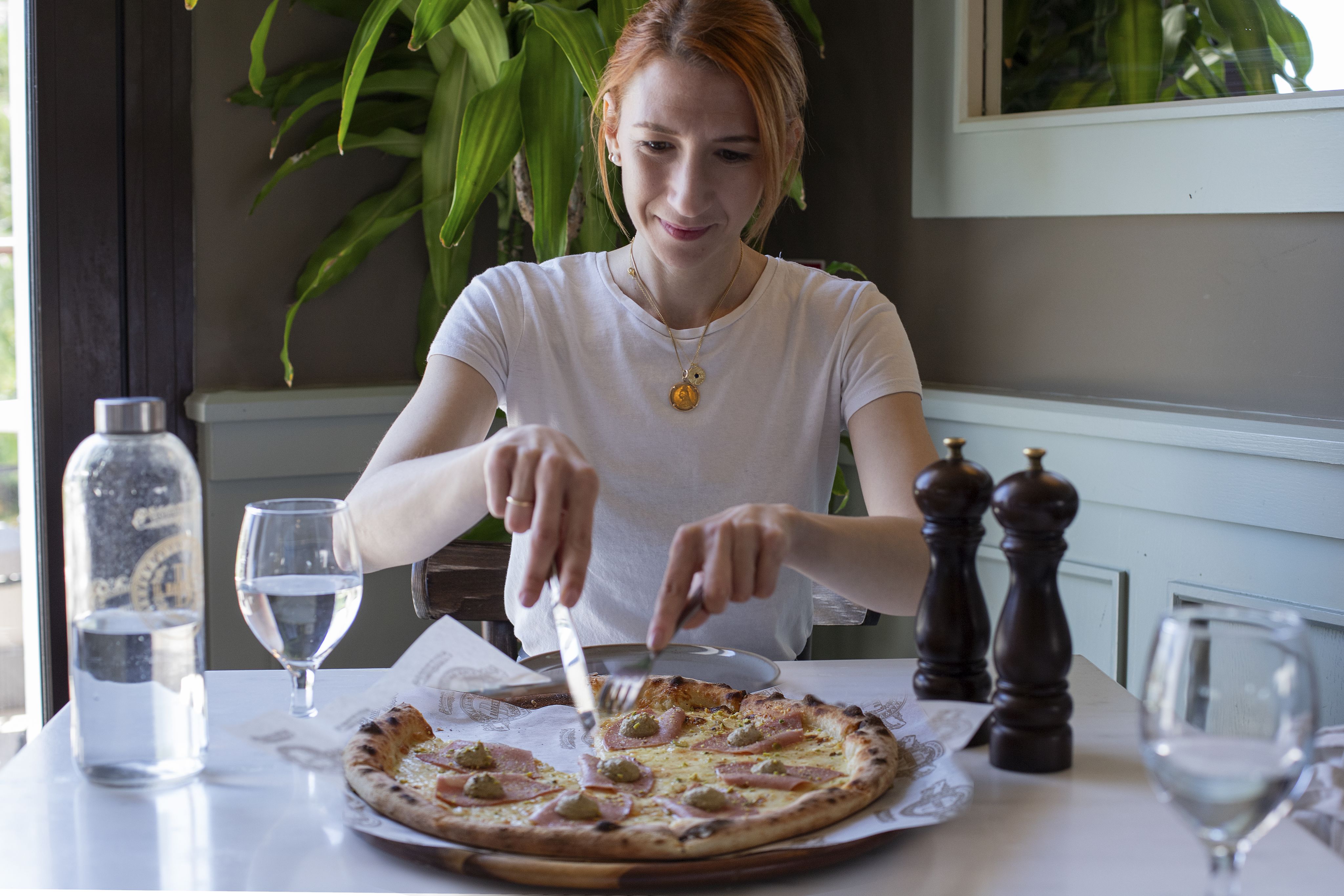 Μετά από μια μέρα γεμάτη άρωμα θάλασσας και καλοκαιρινές στιλάτες αγορές, ήρθε η ώρα για ένα μικρό γευστικό διάλειμμα και ανάκτηση δυνάμεων. Μια ζουμερή ιταλική πίτσα με προσούτο και φυστίκι Αιγίνης ήταν η τέλεια επιλογή. Εκπληκτικός και αναπάντεχος συνδυασμός υλικών σε μια φίνα και εκλεπτυσμένη συνταγή.