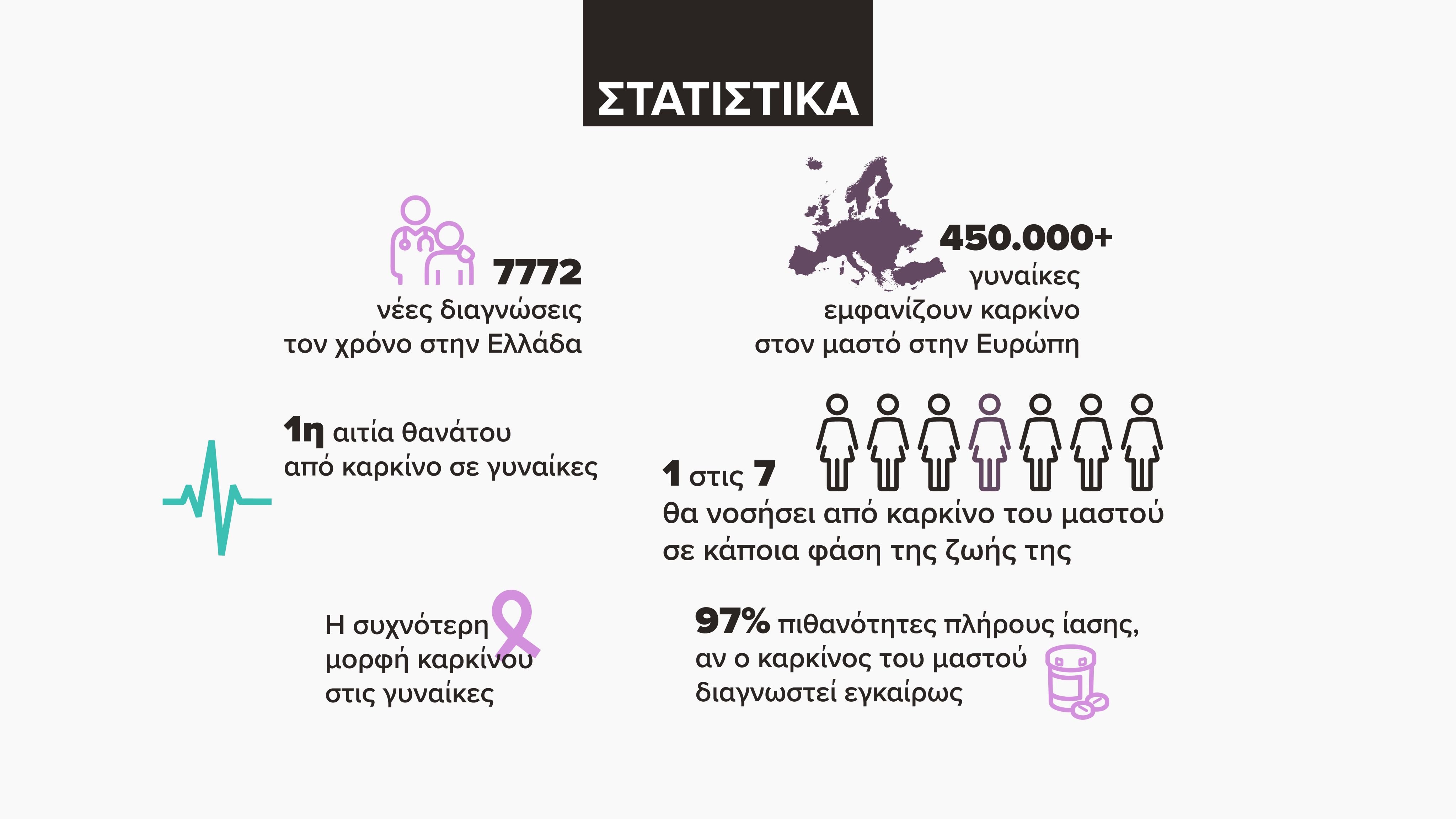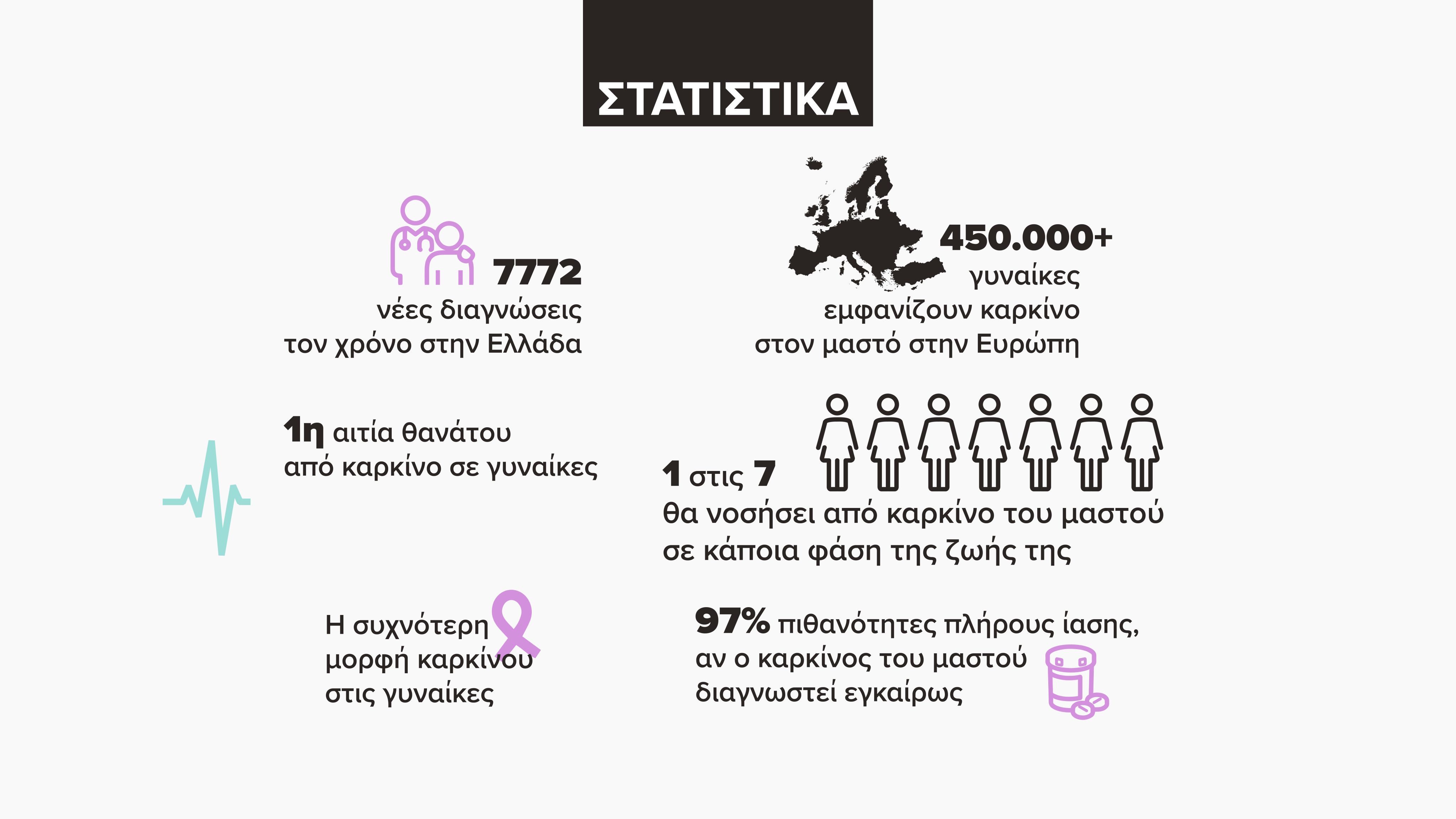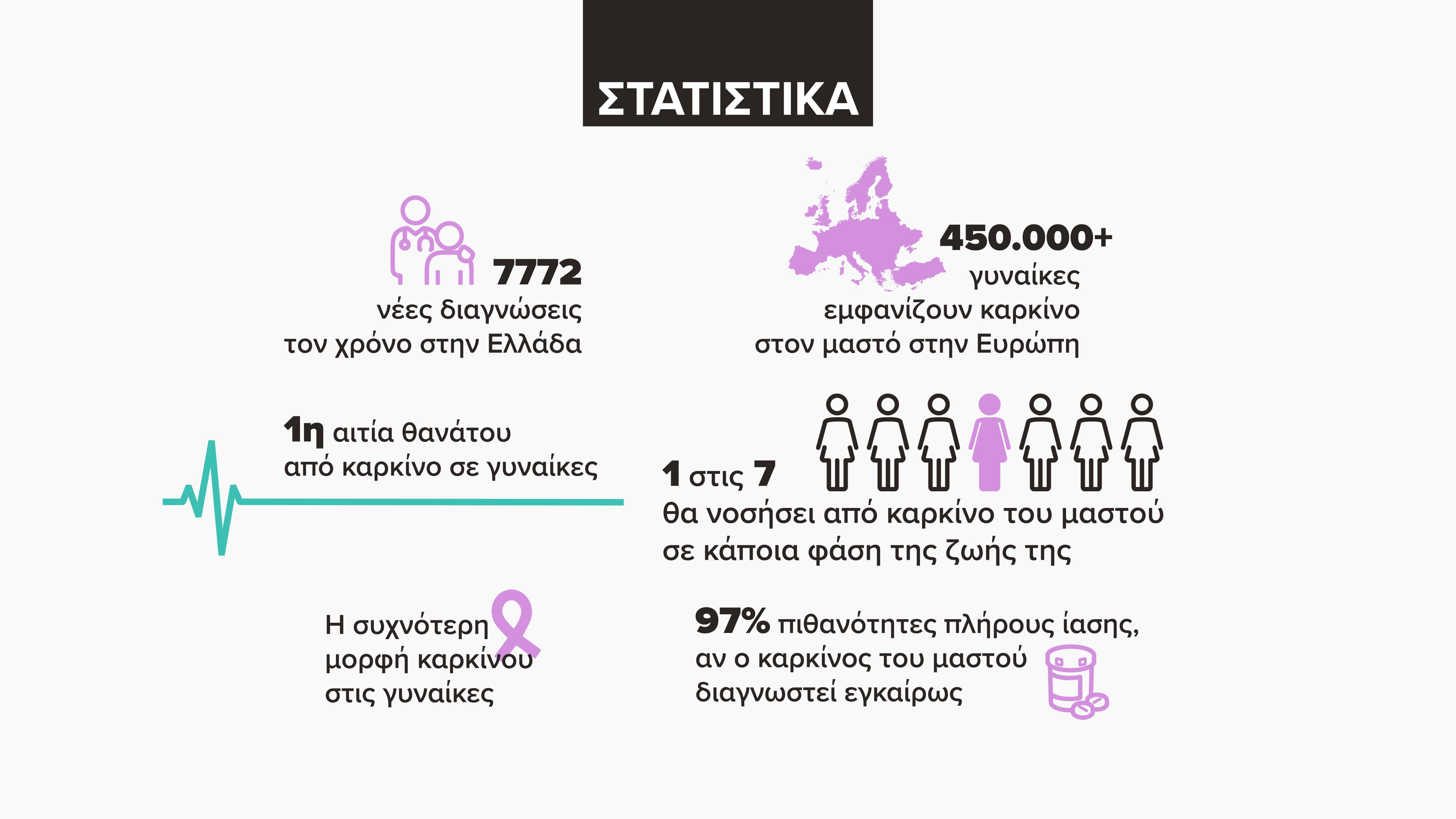 Στην Ελλάδα αναφέρονται 6.000 νέες περιπτώσεις κάθε χρόνο, ενώ υπολογίζεται ότι 1 στις 7 γυναίκες παγκοσμίως θα εκδηλώσει καρκίνο του μαστού κάποια στιγμή στη ζωή της. Και παρότι ο κίνδυνος εμφάνισης της νόσου είναι σχεδόν διπλάσιος για γυναίκες που κάποια συγγενής τους α’ βαθμού έχει διαγνωστεί με αυτήν, το 85% των γυναικών που εμφανίζουν καρκίνο του μαστού δεν έχουν οικογενειακό ιστορικό, παρά οφείλεται σε γενετικές μεταλλάξεις -αποτέλεσμα του σύγχρονου τρόπου ζωής.