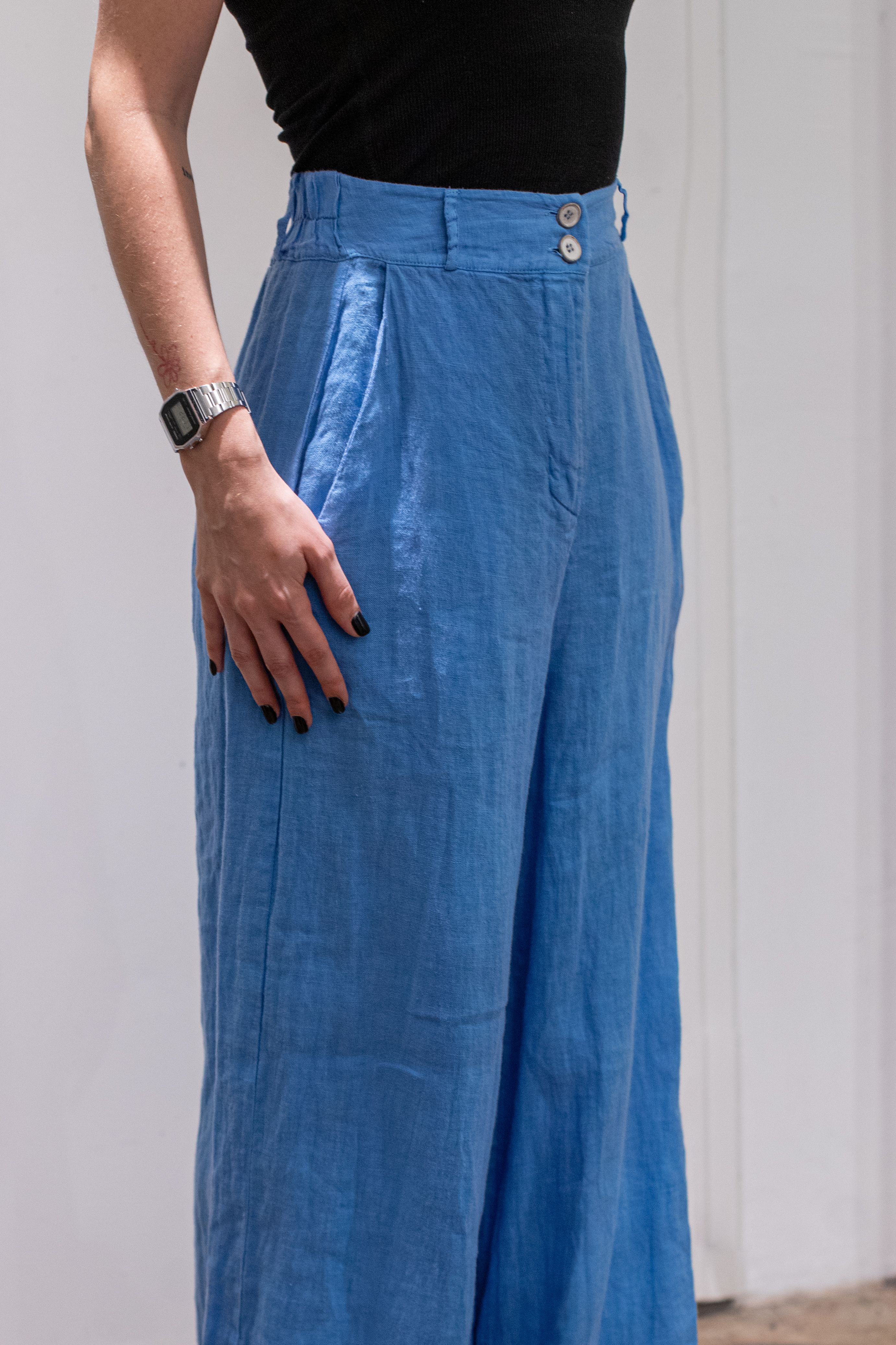 Πώς μπορεί μια λινή παντελόνα να λείπει από τη βαλίτσα των διακοπών; Η λινή γαλάζια ψηλόμεση παντελόνα από το κατάστημα BSB θα γίνει η αγαπημένη σου- και θα τη φορέσεις και μετά τις διακοπές. Θα σε κρατήσει δροσερή και αέρινη ακόμη και τις ημέρες του καύσωνα ενώ παράλληλα θα αναδείξει τη σιλουέτα σου με τη ψηλόμεση γραμμή της.