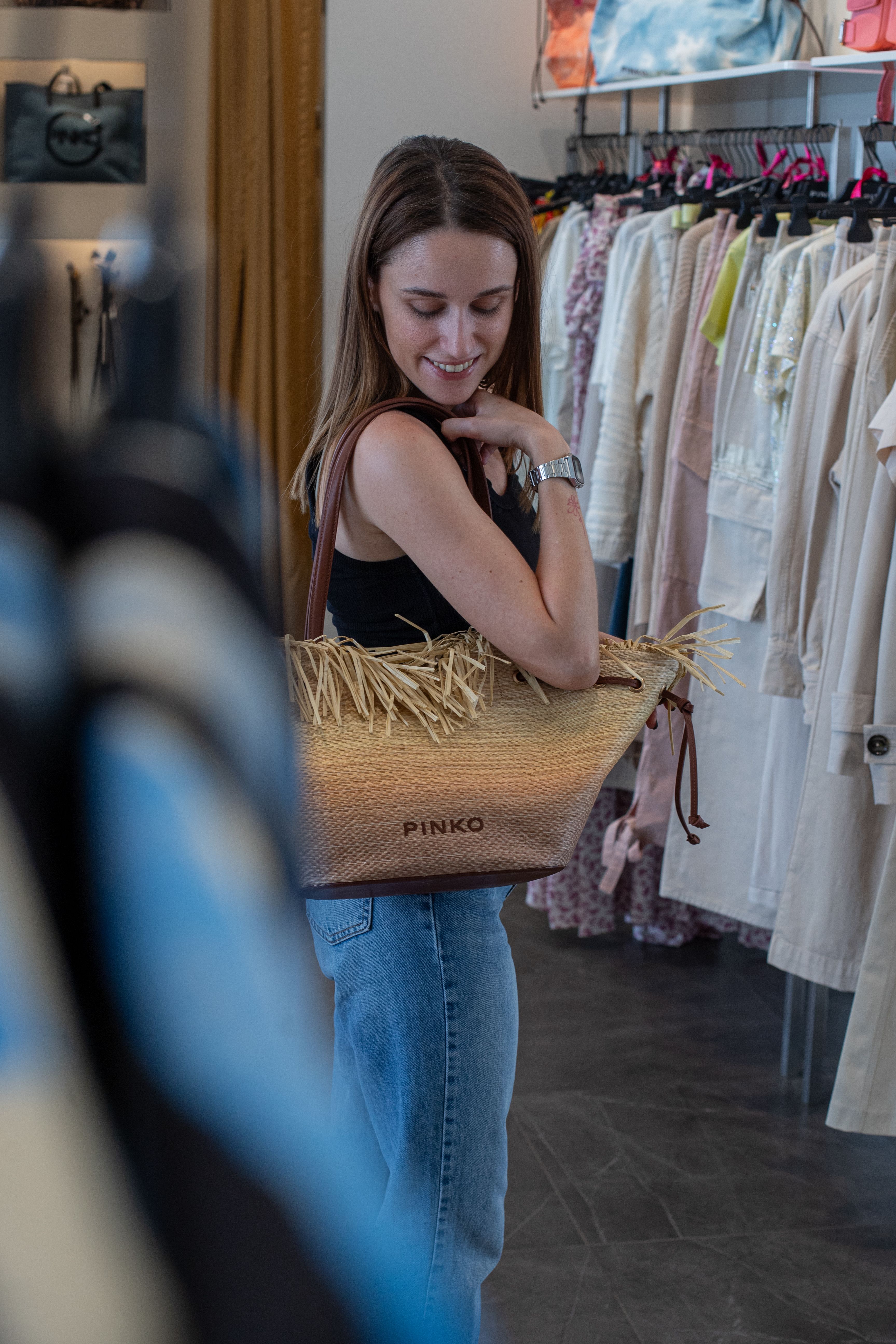 Αν μια τσάντα έχει γίνει η εμμονή των γυναικών αυτό το καλοκαίρι, αυτή είναι η raffia. Η πλέξη της αλλά και ο ντελικάτος σχεδιασμός της δίνει τα απαραίτητα summer vibes σε κάθε look. Η raffia τσάντα από το κατάστημα PINKO είναι τόσο κομψή όσο χρειάζεσαι για τα look παραλίας αλλά και για τα chic outfits.