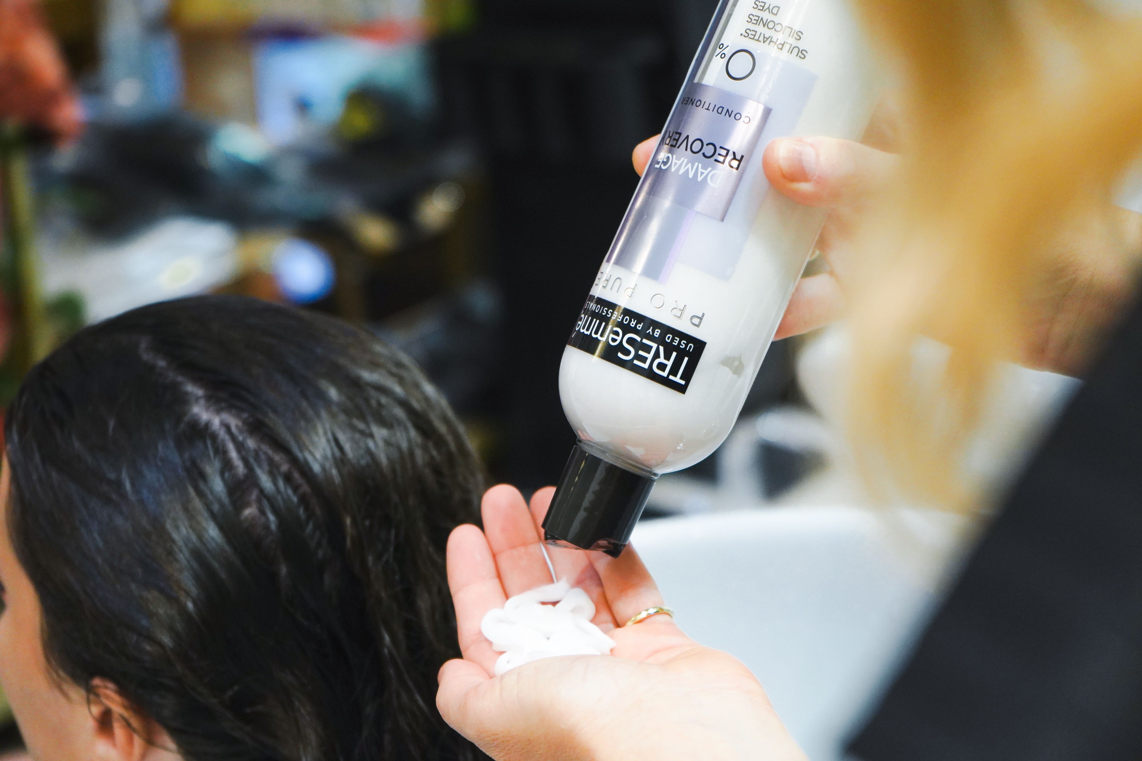 Πιο συγκεκριμένα, η hair expert ξεκίνησε με το λούσιμο χρησιμοποιώντας μια γενναιόδωρη ποσότητα από το TRESemmé PRO PURE Damage Recovery Shampoo, το οποίο επανορθώνει, ενισχύει την υγρασία και είναι απαλλαγμένο από θειικά άλατα, σιλικόνες και χρωστικές. Ακόμη, προσφέρει μια ξέγνοιαστη εμπειρία λουσίματος που βοηθά στην αποκατάσταση ορατών σημαδιών φθοράς των μαλλιών και η νικήτρια απόλαυσε ιδιαίτερα τη διαδικασία!