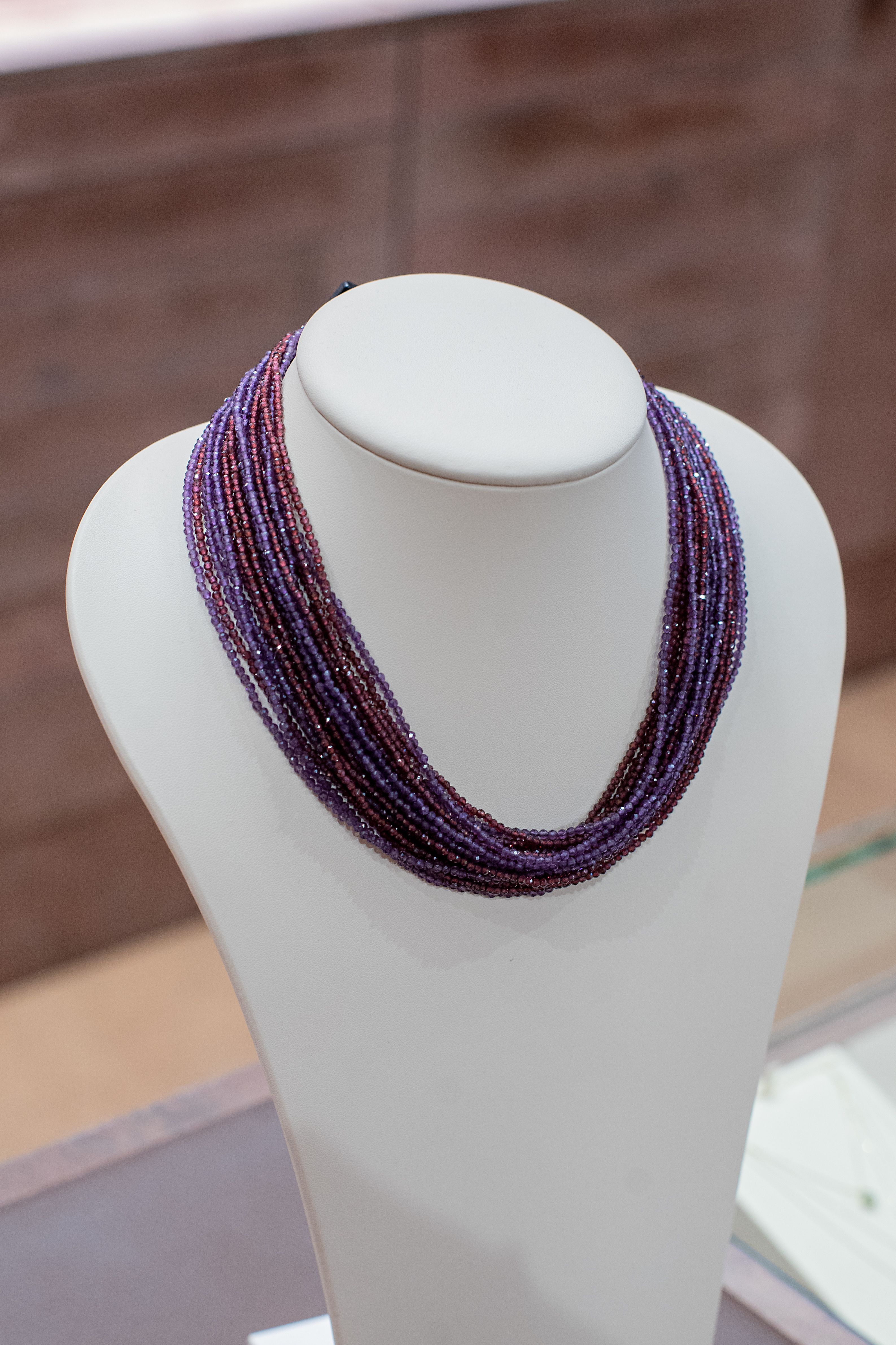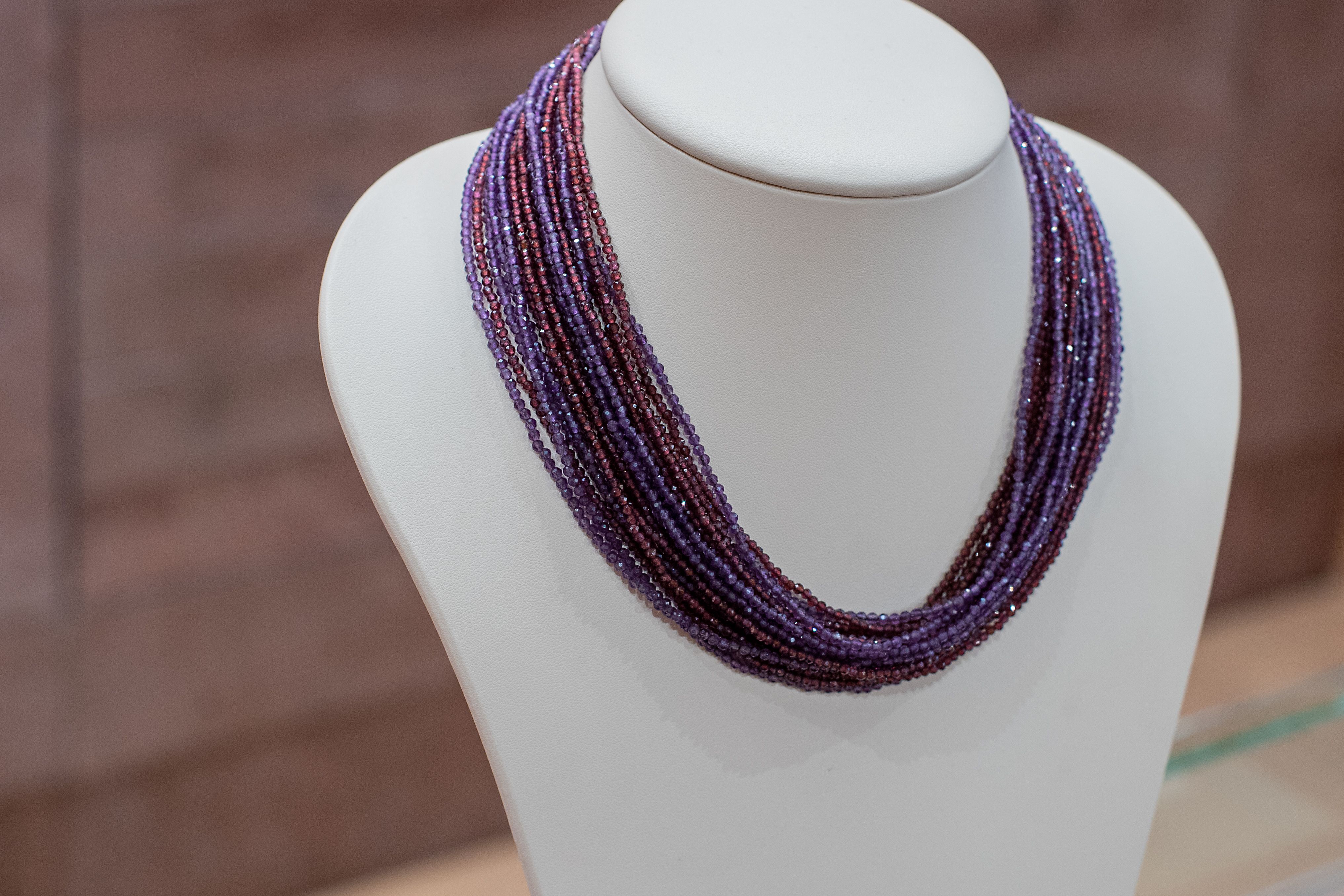Κανένα look δεν είναι ολοκληρωμένο αν δεν έχει ένα κόσμημα να δίνει τις απαραίτητες νότες πολυτελείας. Ακτινοβολώντας, και με μια παιχνιδιάρικη διάθεση και εντυπωσιακό layering από σπάνιους ημιπολύτιμους λίθους το κολιέ από τα καταστήματα Lilalo σε μοβ και βουργουνδί τόνους θα δώσει χρώμα στα μονόχρωμα γιορτινά outfit σου.