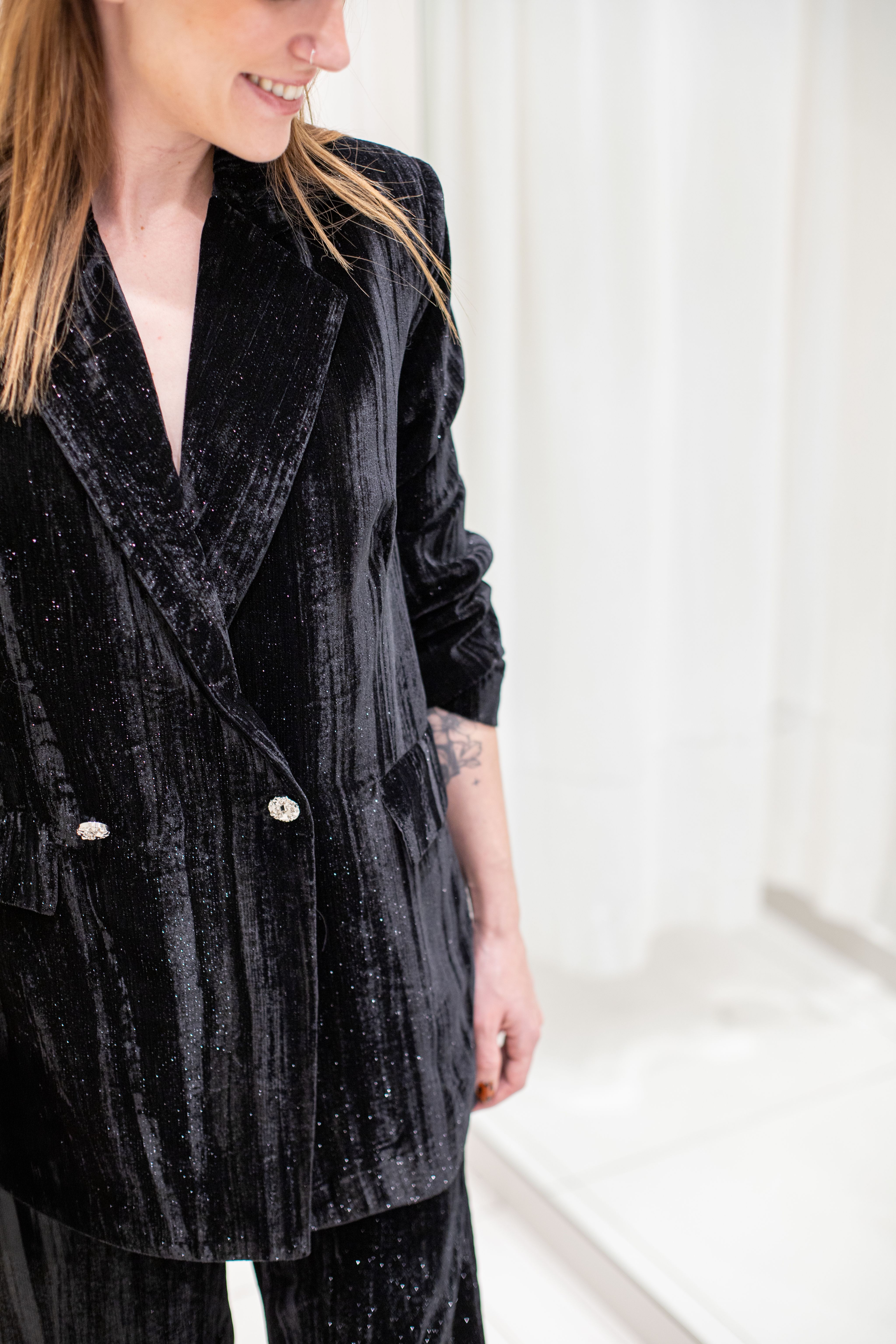 Αν υπάρχει μια υφή – ορισμός της πολυτέλειας, αυτή είναι σίγουρα το βελούδο και, αν αγαπώ κάποιο σετ περισσότερο από κάθε άλλο, αυτό είναι ένα chic κοστούμι. Σε μαύρο χρώμα, διαχρονικό και ιδιαίτερα κομψό και με αστραφτερές λεπτομέρειες, το velvet κοστούμι από το κατάστημα Regalinas είναι το σύνολο που θα σου δώσει στο Πρωτοχρονιάτικο ρεβεγιόν την πολυτέλεια που ψάχνεις.