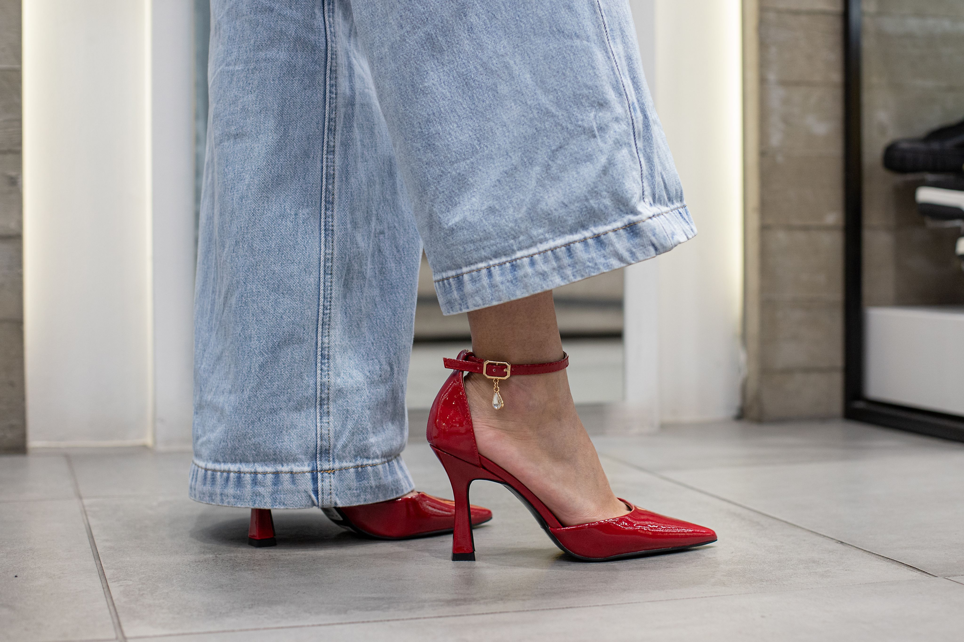 Είτε βρεθείς σε ρεβεγιόν στο σπίτι, είτε σε κάποιο κέντρο, τα παπούτσια πρέπει να είναι άνετα και σικάτα, για αυτό η επιλογή slingbacks με άνετο τακούνι και εύκολο πάτημα είναι η επιλογή που πρέπει να κάνεις. Ό,τι κι αν φορέσεις, το κόκκινο χρώμα και η γυαλιστερή του υφή ταιριάζει με όλα.