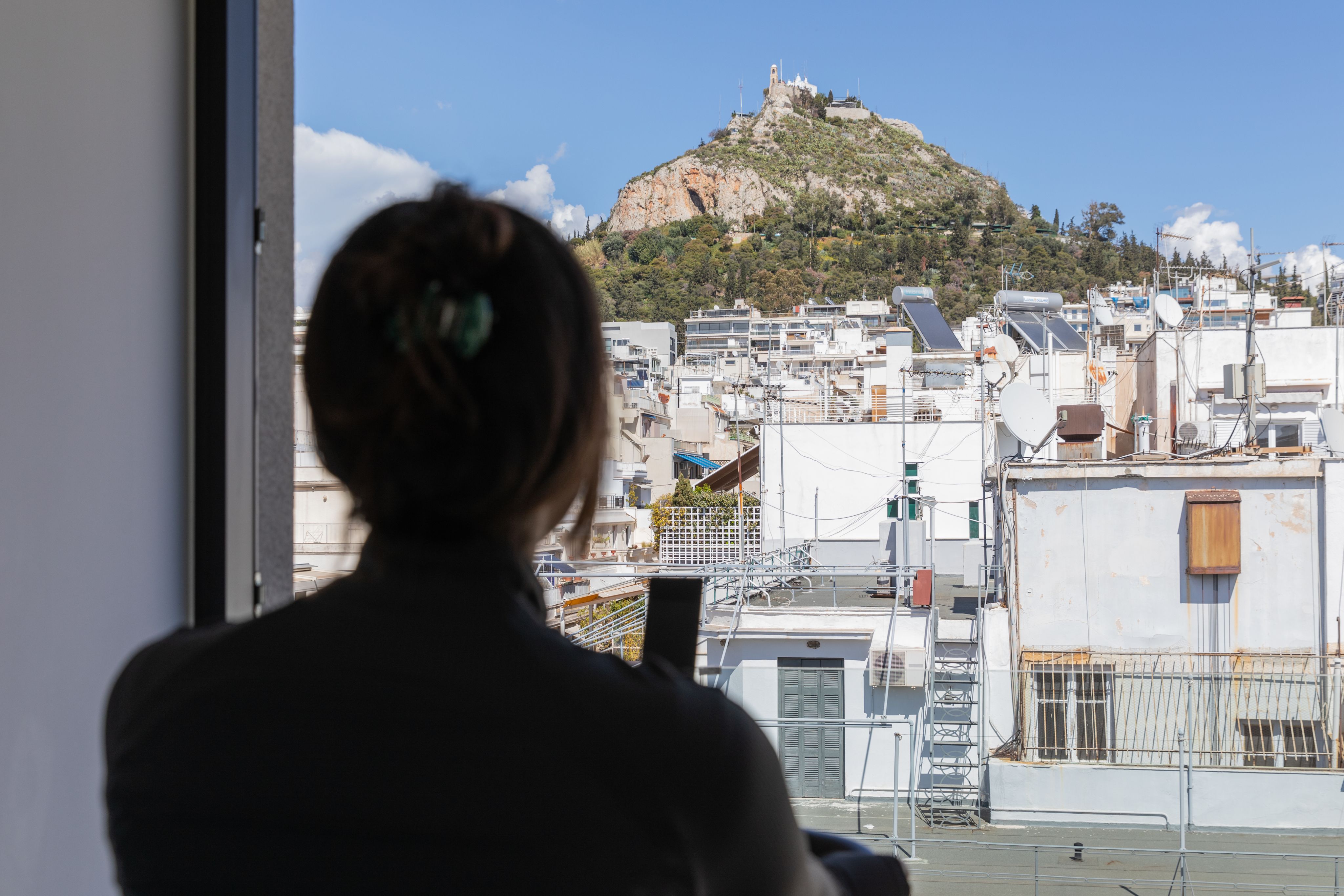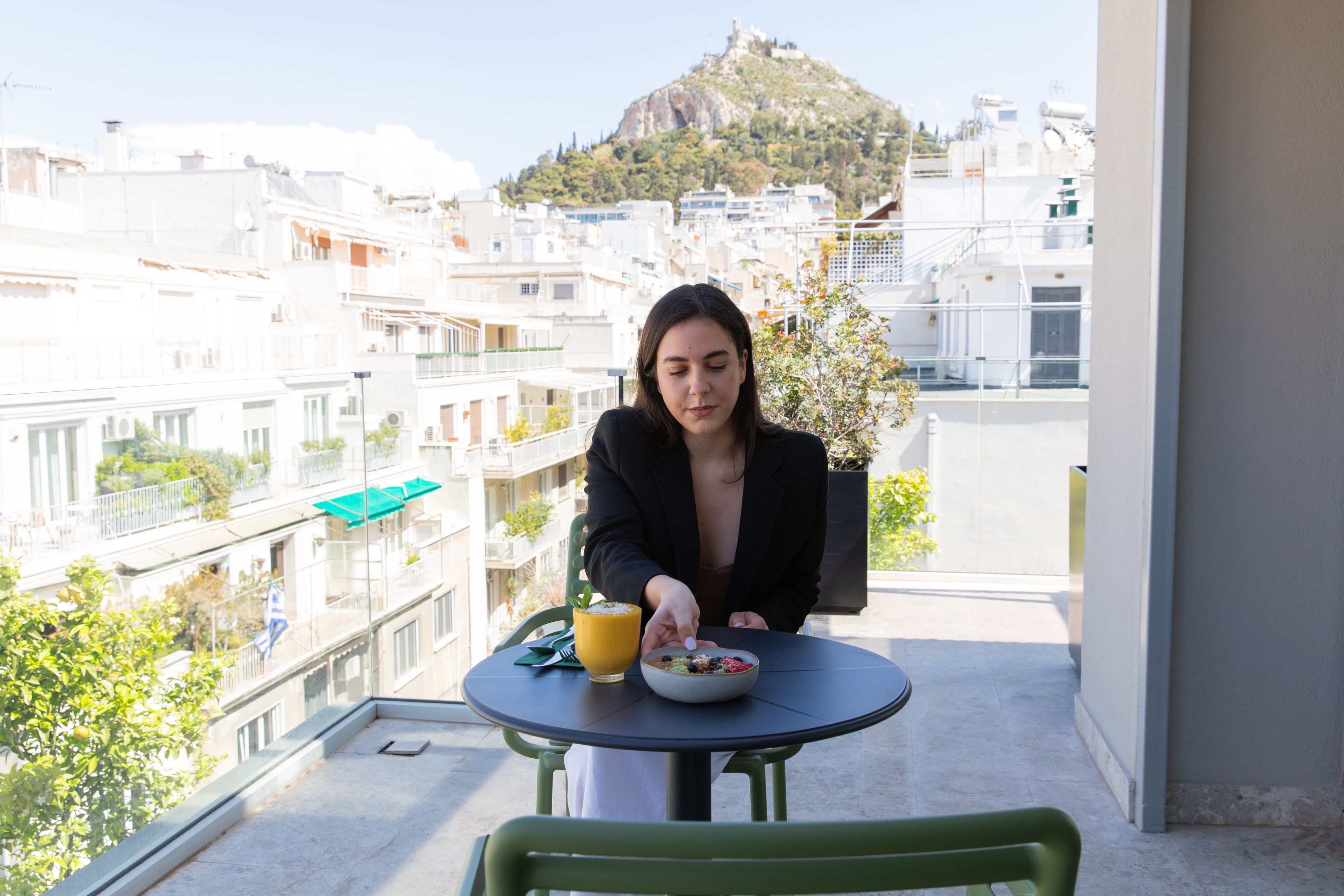 Επέλεξα το "σπίτι" μου για την ημέρα να είναι το penthouse του The Social Athens στον 7ο όροφο. Παρατήρησα λίγο τον χώρο: Μinimal αλλά ζεστή αισθητική, άνεση χωρίς την αίσθηση του επιτηδευμένου, προσεγμένη διακόσμηση, μεγάλα παράθυρα που άφηναν το φως να πλημμυρίσει κάθε κρυφή γωνία. Ξαφνικά, όλη η ένταση της πόλης φαινόταν να χάνεται. Βγήκα έξω, στο μπαλκόνι. Ακόμα και τώρα, που γράφω αυτό το άρθρο, θυμάμαι με κάθε λεπτομέρεια τη θέα στον Λυκαβηττό. Απλώς, out of space.