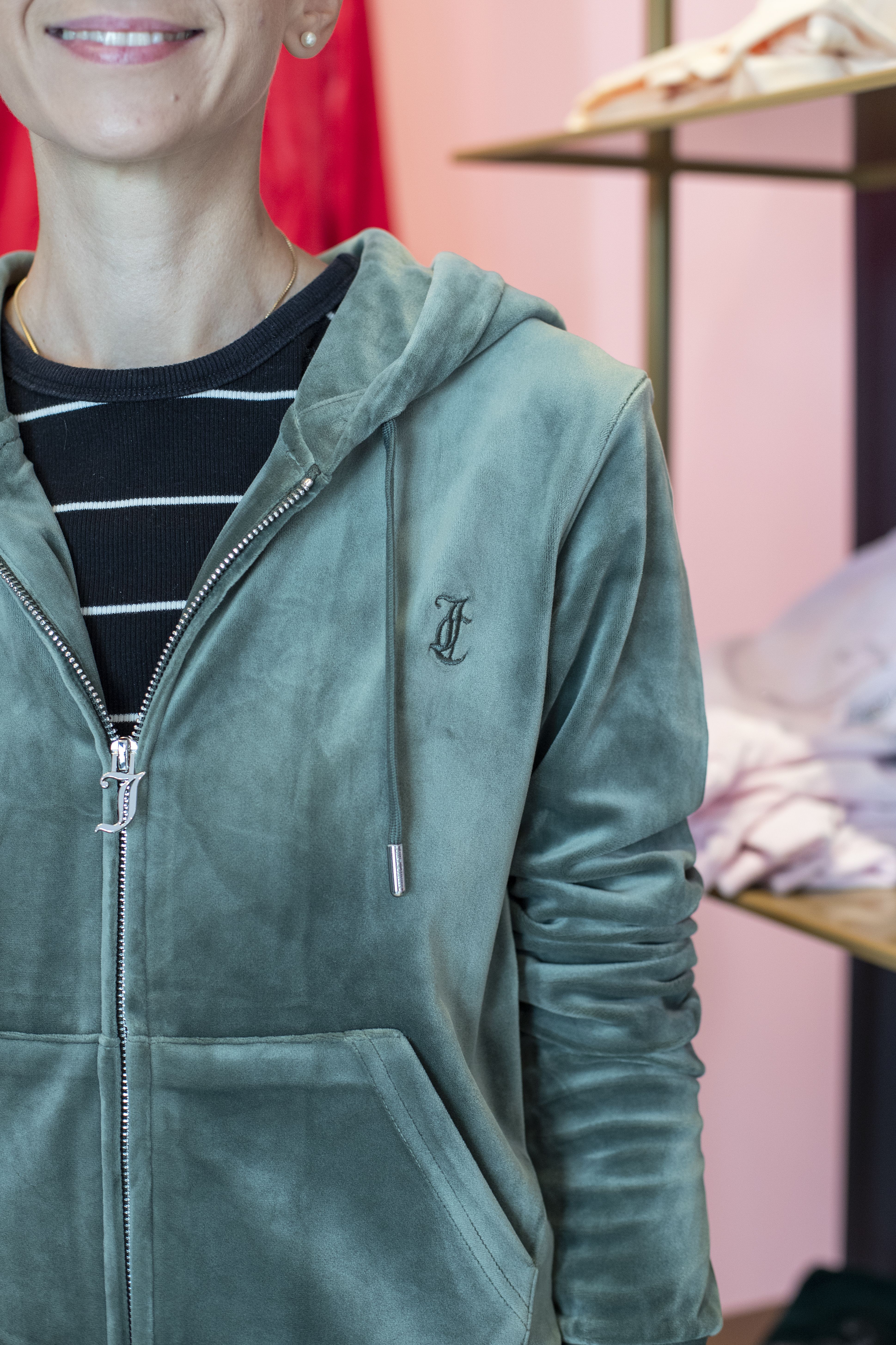 Ακόμα και τις στιγμές που θέλεις να ντυθείς πιο casual ή με πιο αθλητικά ρούχα, μπορείς να είσαι στιλάτη και σύγχρονη. 'Ενα βελουτέ φούτερ με κουκούλα σε βαθύ πράσινο προσδίδει έναν τόνο κομψότητας στο σύνολο.