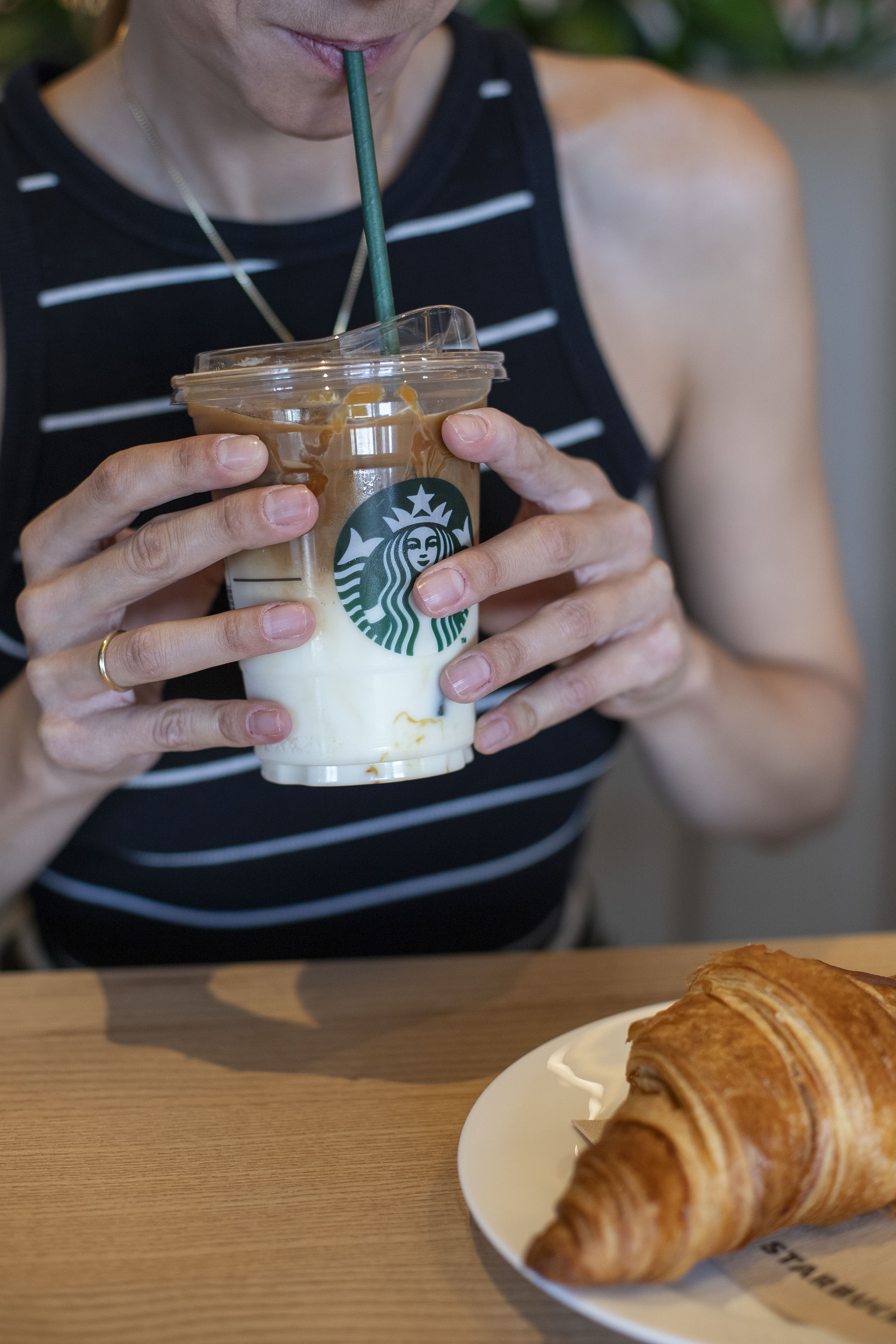 Μετά τη βόλτα και τα ψώνια ένα διάλειμμα για καφέ είναι απαραίτητο. Εμείς επιλέξαμε να δροσιστούμε με ένα Iced Caramel Macchiato και να πάρουμε δυνάμεις για τη συνέχεια απολαμβάνοντας ένα ζεστό και λαχταριστό κρουασάν βουτύρου.
