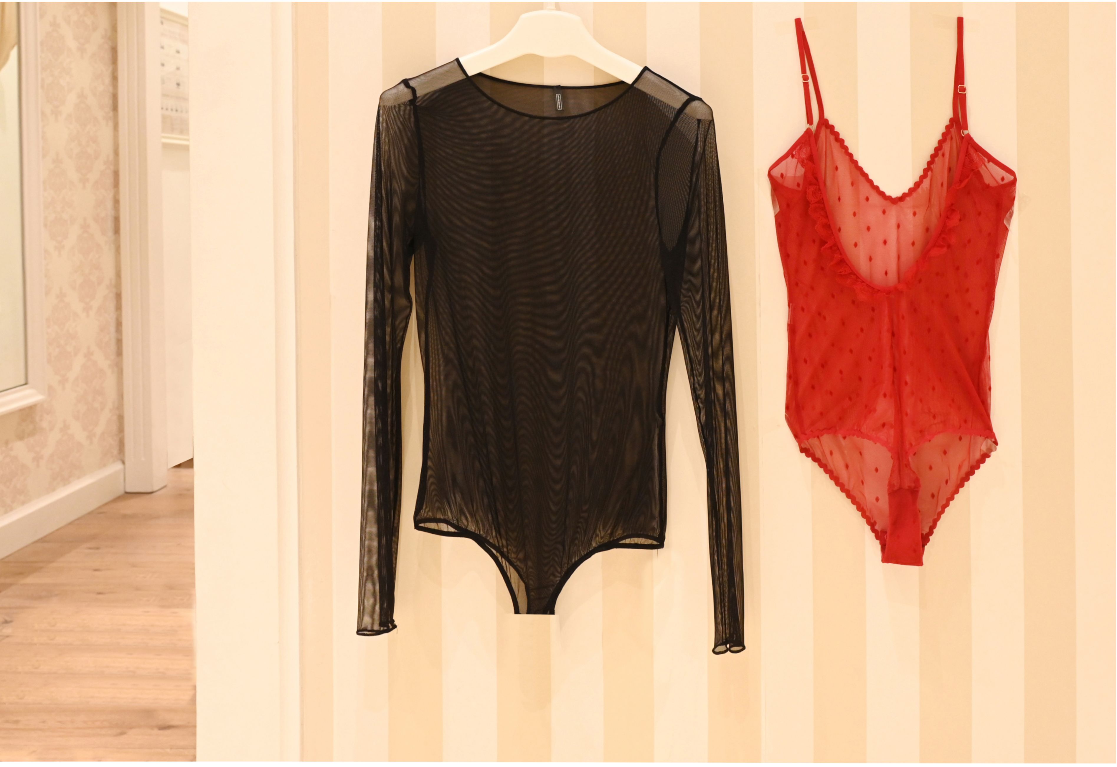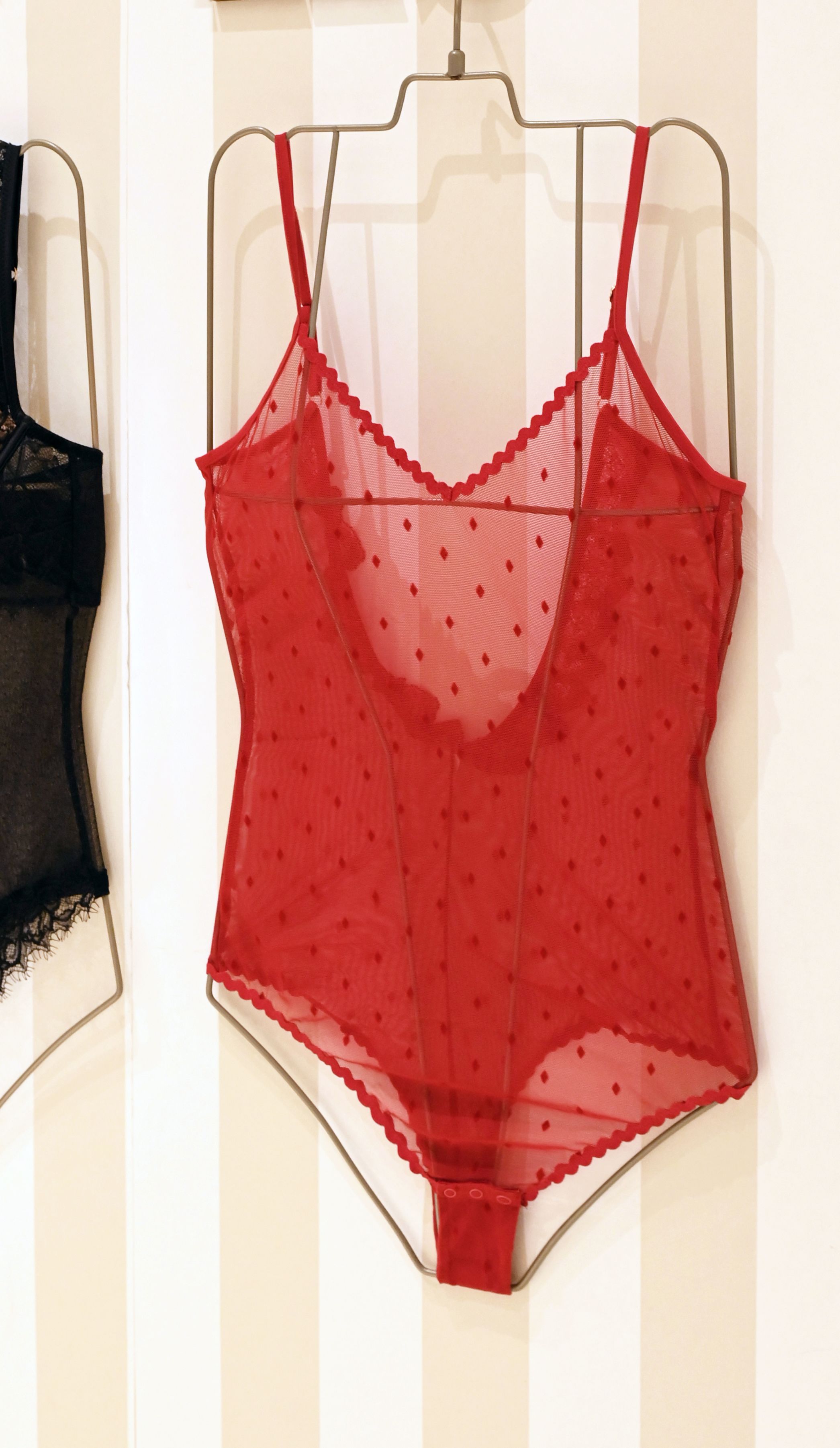 Το κόκκινο είναι το κατεξοχήν χρώμα των γιορτών, για αυτό ακριβώς δεν μπορεί να λείπει ακόμα και από τα εσώρουχά σου. Ένα διάφανο κορμάκι με λεπτές τιράντες και μοτίβο από ρόμβους θα γίνει το αγαπημένο σου μεσοφόρι αυτή την περίοδο. Επίσης μπορεί να γίνει η εορταστική πινελιά σε ένα look με λευκό πουκάμισο ή ακόμα και σε ένα σύνολο με layering διάφανων επιφανειών.