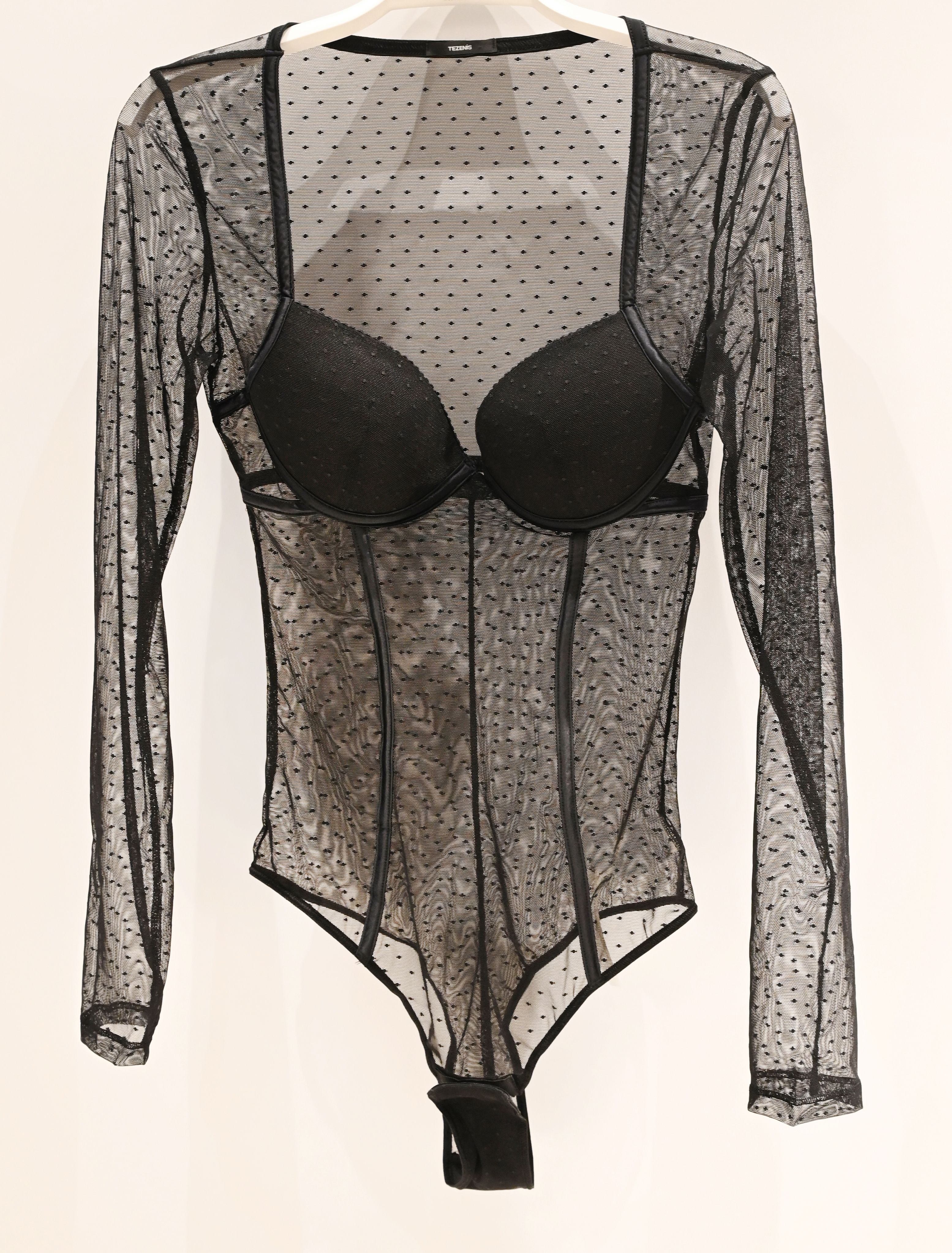 Αν θέλεις ένα κορμάκι που να το φοράς όχι μόνο ως εσώρουχο, αλλά και ως top, τότε ένα με διαφάνεια, μακριά μανίκια και ενσωματωμένο σουτιέν είναι αυτό που χρειάζεσαι. Φόρεσέ το και χόρεψε μέχρι το πρωί στα χριστουγεννιάτικα πάρτι και όχι μόνο. Συνδύασέ το με ψηλόμεσο tailored παντελόνι ή με χαμηλόμεσο barrel τζιν παντελόνι και kitten heels για elevated και stylish εμφανίσεις.
