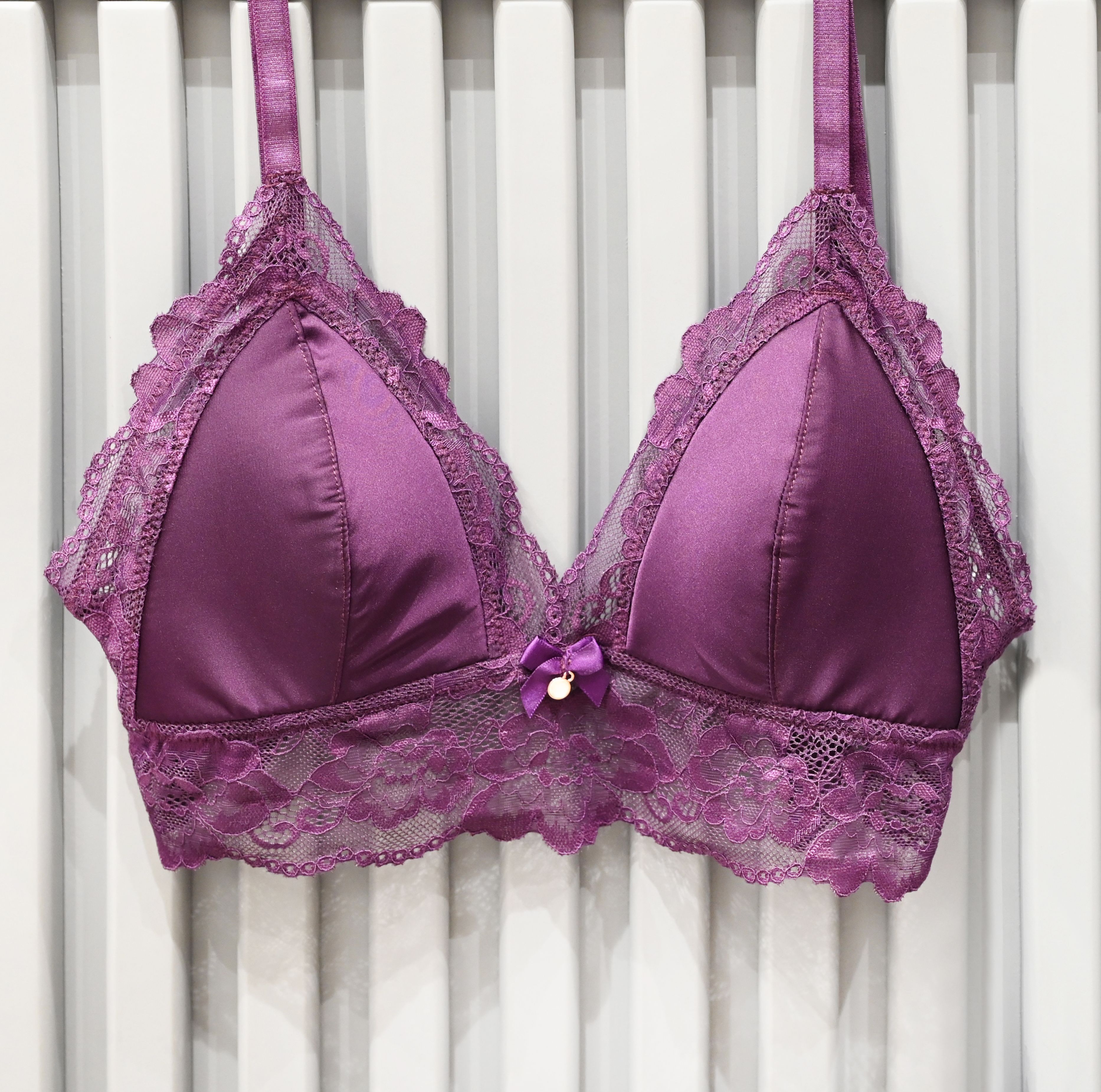 Τα bralette τα έχουμε αγαπήσει και τα έχουμε φορέσει πάρα πολύ τα τελευταία χρόνια. Και αυτές τις γιορτές λοιπόν επένδυσε σε ένα τριγωνικό bralette με ενίσχυση στο αριστοκρατικό μωβ χρώμα και λεπτομέρειες από δαντέλα. Είναι ιδανικό για να ξεπροβάλει σε μικρές δόσεις από πουκάμισα ή να δίνει μια θηλυκή πινελιά σε look με διαφάνεια.