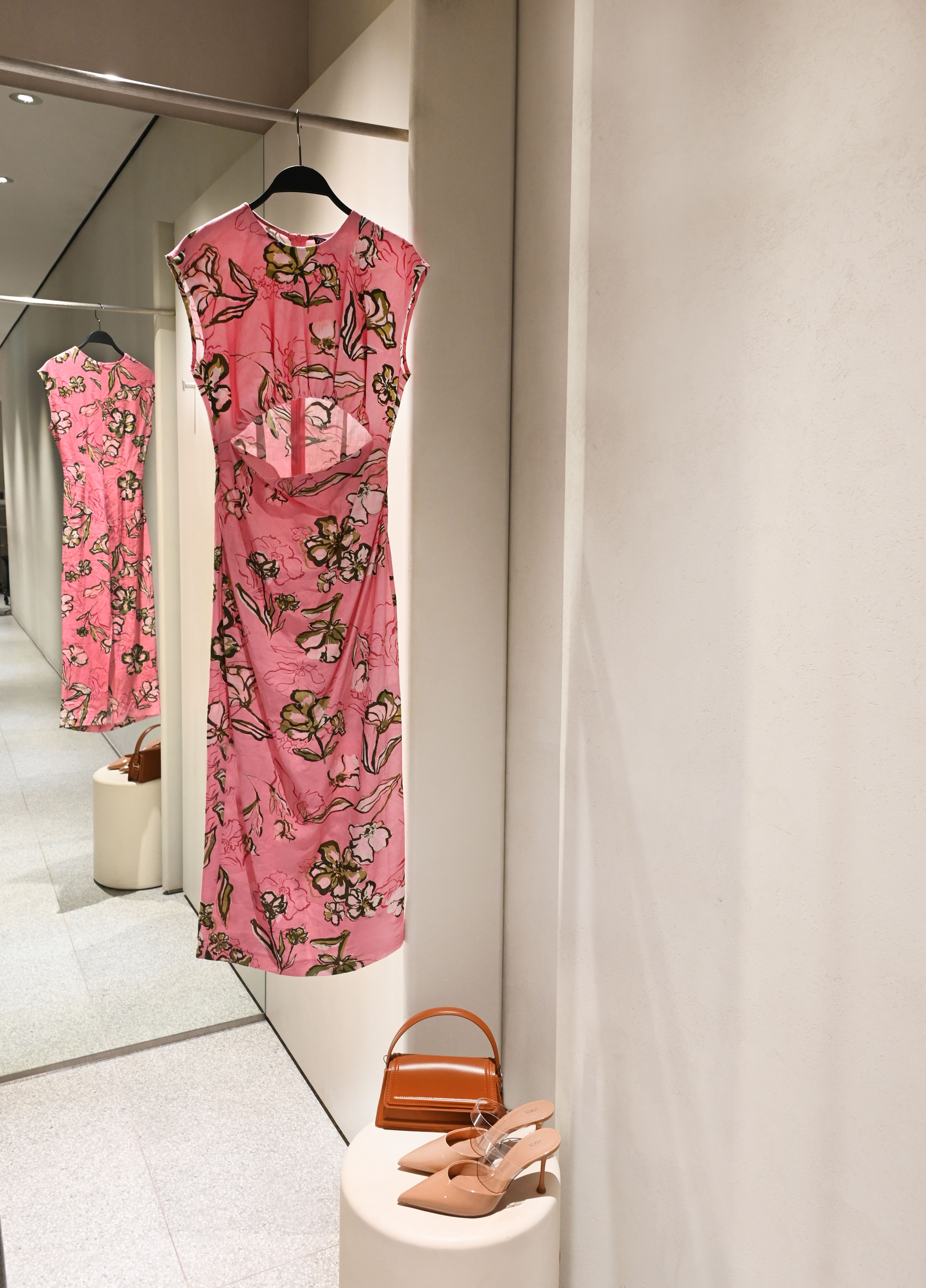Σικάτο και παιχνιδιάρικο. Τα ζωγραφισμένα floral και το έντονο ροζ χρώμα του προσδίδουν χάρη και το κάνουν ιδανικό item για όλη την ημέρα. Από μπροστά εξαιτίας του ανοίγματος μοιάζει με σετ από φούστα και μπλούζα. Συνδύασέ το με slingbacks, ψηλοτάκουνα ή λεπτοκομμένα strappy πέδιλα.