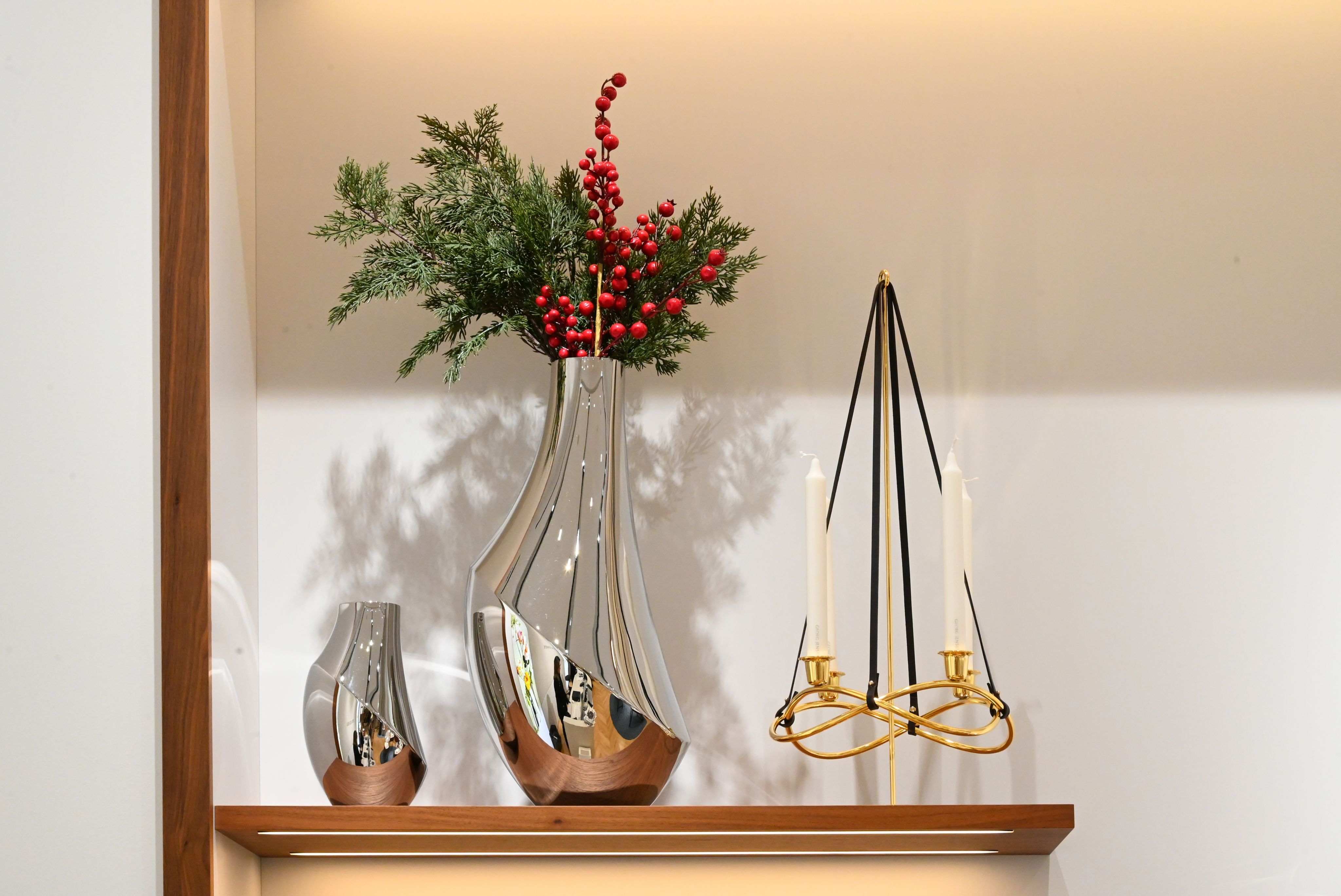 Υπάρχει κάτι σχεδόν τελετουργικό στον τρόπο που ανάβουμε τα κεριά λίγο πριν σερβιριστεί το δείπνο. Το κηροπήγιο Season από ανοξείδωτο ατσάλι και χρυσό, δεν είναι απλώς ένα διακοσμητικό· είναι ένα statement κομμάτι που αντανακλά το φως με έναν τρόπο μαγικό. Μπορείς να προσθέσεις και την ειδική βάση για να του δώσεις ύψος και επιπλέον όγκο, δημιουργώντας μια πολυεπίπεδη σύνθεση που κλέβει τις εντυπώσεις. Συνοδευόμενο από τα κομψά κεριά της συλλογής, γίνεται ο πρωταγωνιστής της τραπεζαρίας, προσφέροντας εκείνη την αίσθηση "quiet luxury" που αναζητάμε στις γιορτινές μας συγκεντρώσεις.