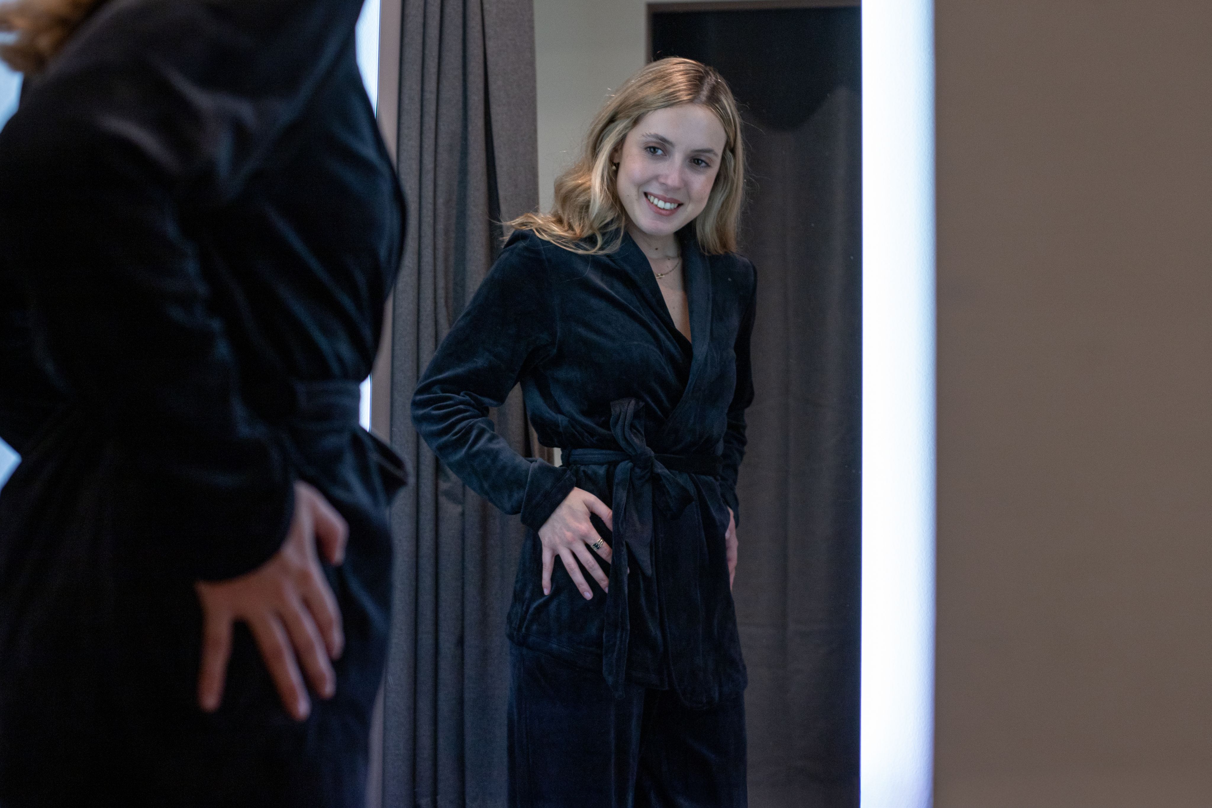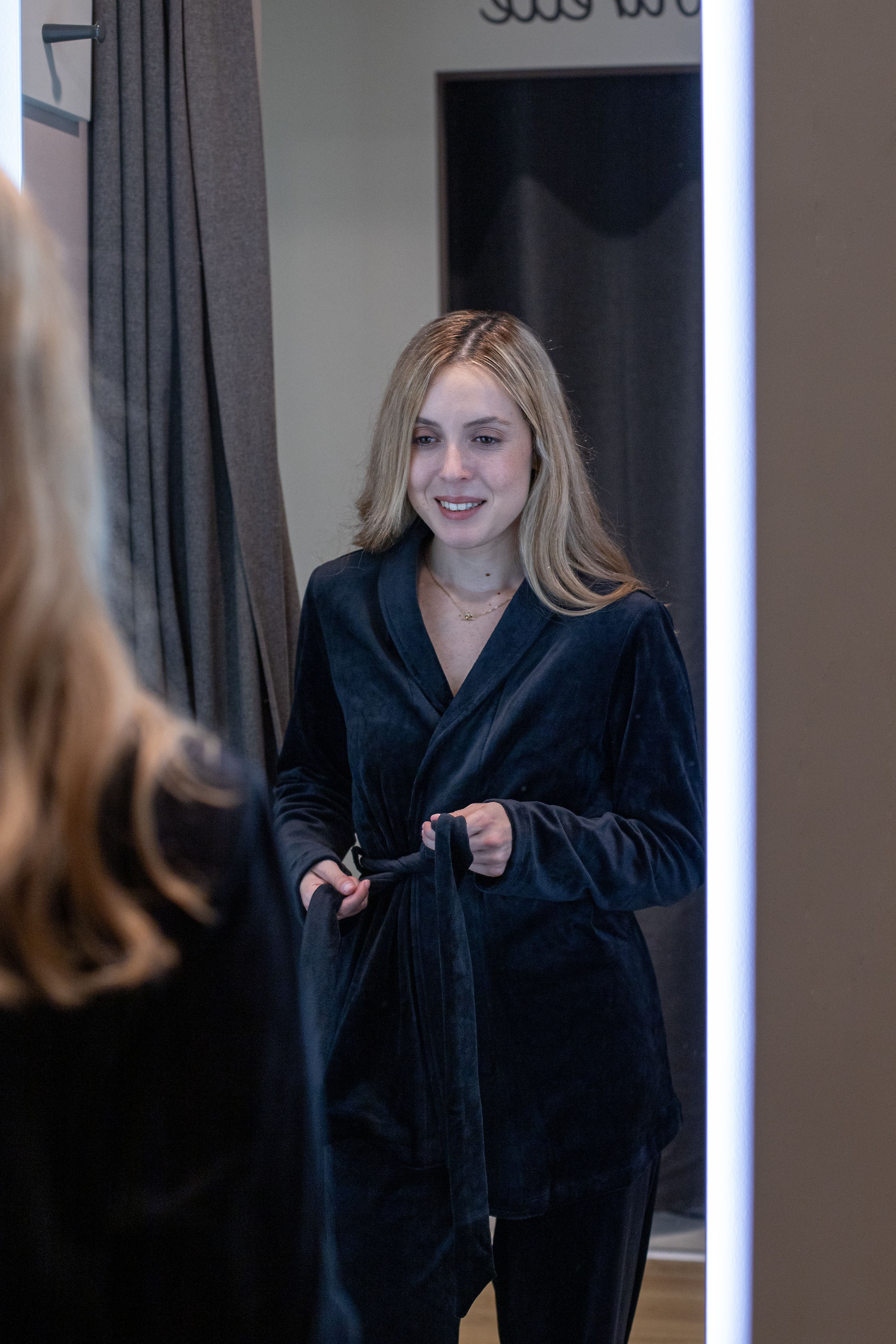 Αυτό το βελούδινο, απαλό και άνετο homewear σετ αγκαλιάζει το σώμα μας, με τρόπο μοναδικό. Αποτελεί την ιδανική επιλογή για τις στιγμές που περνάς στο σπίτι, χαλαρώνοντας με ένα βιβλίο, παρακολουθώντας την αγαπημένη σου σειρά ή απολαμβάνοντας ένα ζεστό ρόφημα. Η απλότητα και η υφή του θα σε κάνουν να το λατρέψεις.