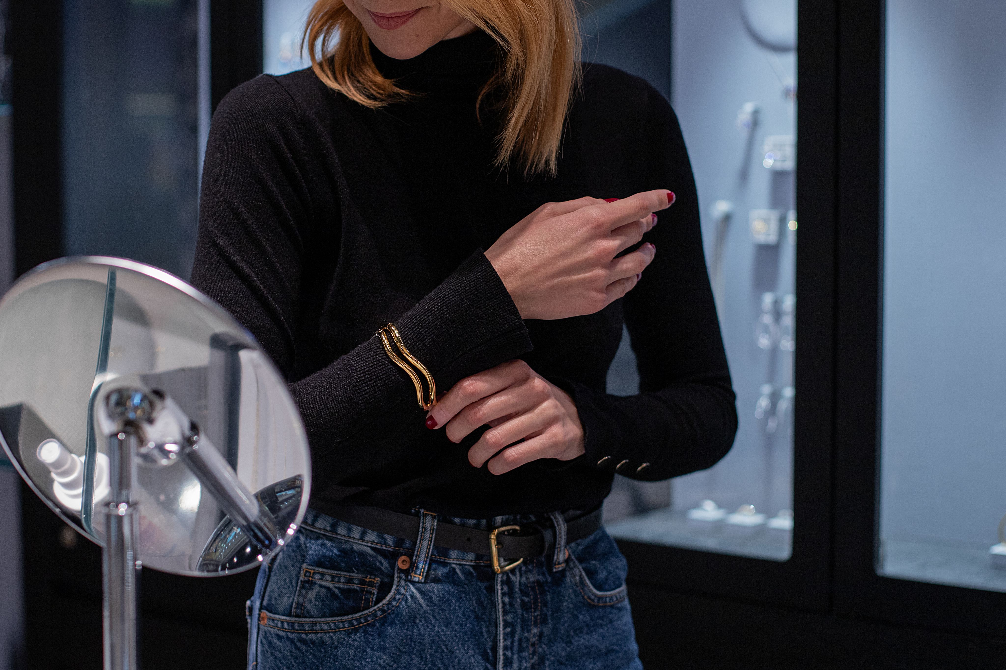 Η ριβιέρα έχει επανέλθει δυναμικά στις τάσεις των κοσμημάτων και συνάδει με την quiet luxury αισθητική που τόσο λατρεύουμε. Για να κάνεις τη διαφορά επίλεξε μια ριβιέρα με κίτρινα και λευκά διαμάντια δεμένη με χρυσό. Μην φορέσεις έντονα σκουλαρίκια, ούτε πολλές λάμψεις. Άφησε το εκπληκτικό αυτό κόσμημα να είναι το κεντρικό item του look σου και συνδύασέ το με ρούχα σε μπορντό, μπλε σκούρο ή καφέ χρώμα.